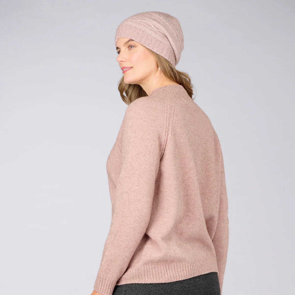 Subtle shoulder detailing and flattering ribbed funnel neck contrast with the soft, delicate knit through the body. This simple, yet thoughtful design allows it to pair beautifully with a pant or a skirt.